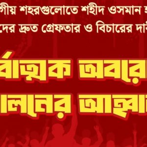 শরীফ ওসমান বিন হাদির হত্যাকাণ্ডের সঙ্গে জড়িতদের দ্রুত গ্রেফতার ও বিচারের দাবিতে দেশের সব বিভাগীয় নগরীতে ‘সর্বাত্মক’ অবরোধের ডাক দিয়েছে ইনকিলাব মঞ্চ। আজ দুপুর ২টা থেকে এই অবরোধ কর্মসূচি শুরু হবে। শনিবার (২৭ ডিসেম্বর) দিবাগত রাত সাড়ে ১১টার দিকে ইনকিলাব
